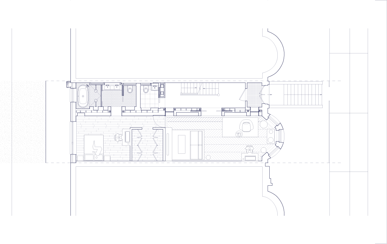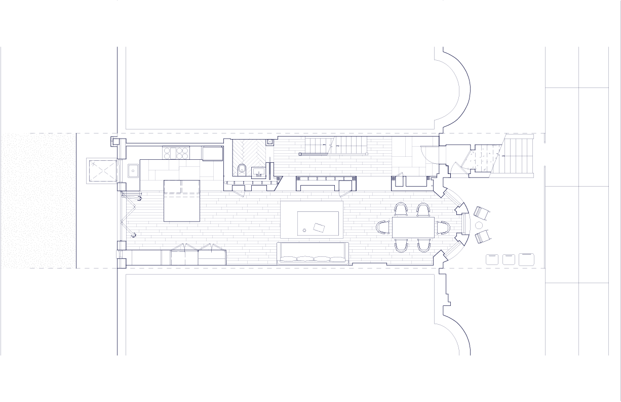 The material palette—white oak, plaster, exposed brick, and glass—creates warmth through restraint rather than excess. Each element serves both functional and compositional purposes: the oak provides continuity, the plaster offers a soft backdrop for daily life, and the preserved structural elements remind us of the home's layered history. This is architecture that doesn't announce itself but rather reveals its intelligence through use—spaces that adapt to morning homework sessions, afternoon gatherings, and evening retreats. Located on a quiet Brooklyn street, the project demonstrates that meaningful density comes not from building higher but from building smarter. Through subtle moves and careful craft, this townhouse proves that the most radical act might be choosing normalcy over spectacle.